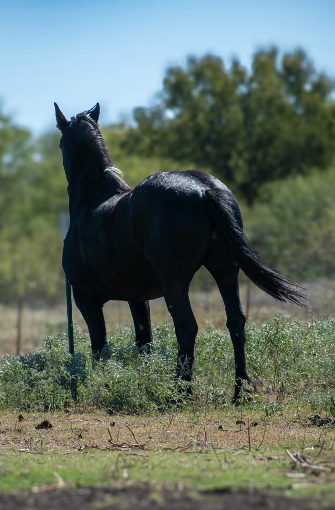 Nyx is not started under saddle, she has loads of potential as fancy as she moves. She is easy to catch, stands tied, leads well, loads, unloads, and bathes well. Nyx is sound and ready for a job!