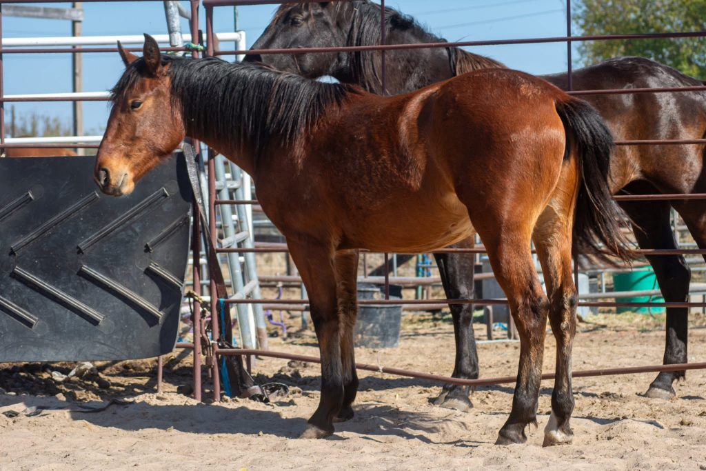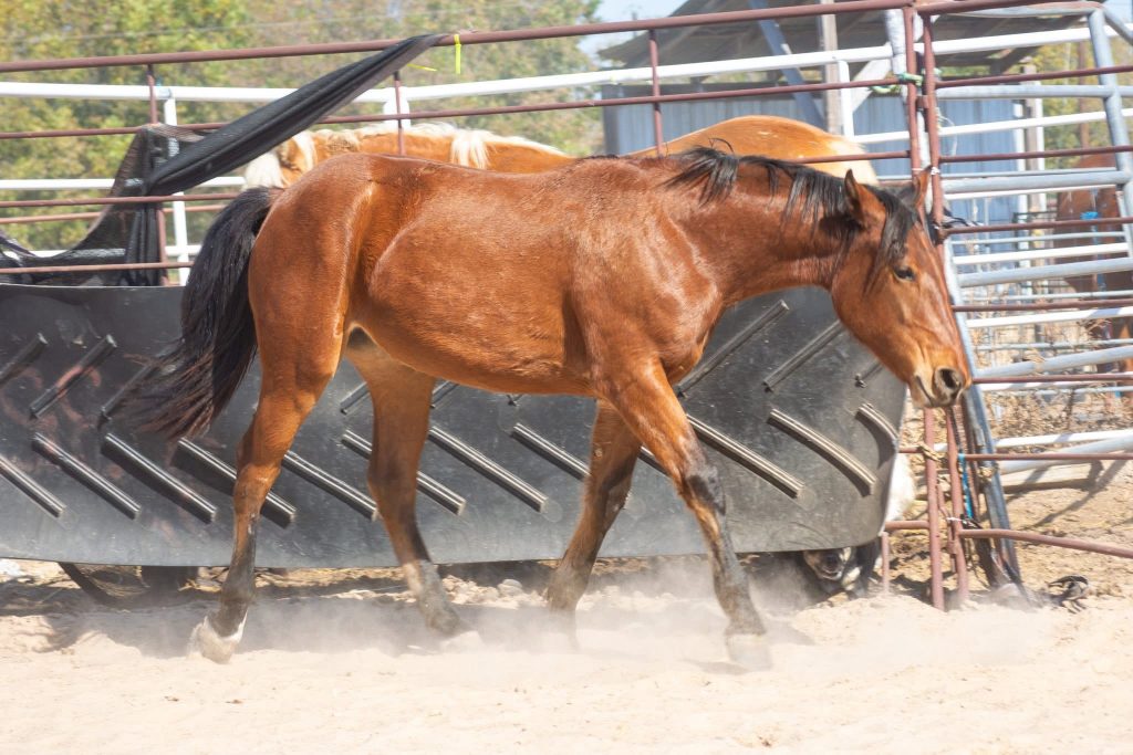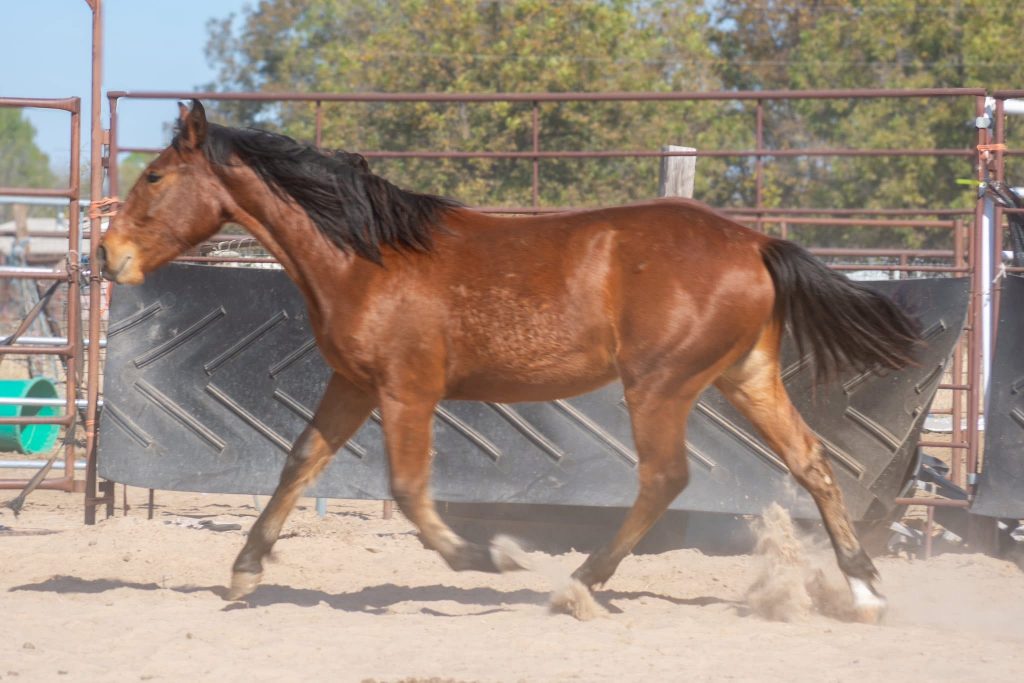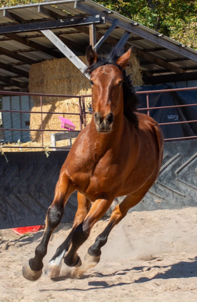 If you want a QUIET minded, clean slate to start, take a good look at SONNY! Sonny is a 2024 grade, DRAFT CROSS, filly, currently standing 14.1-2hh and growing! She floats across the ground, is agile, and FANCY in her plain bay wrapper. I’d expect her to mature around 15.2hh, maybe a little bigger. Sonny is not halter broke, but is socialized to people. SOUND.